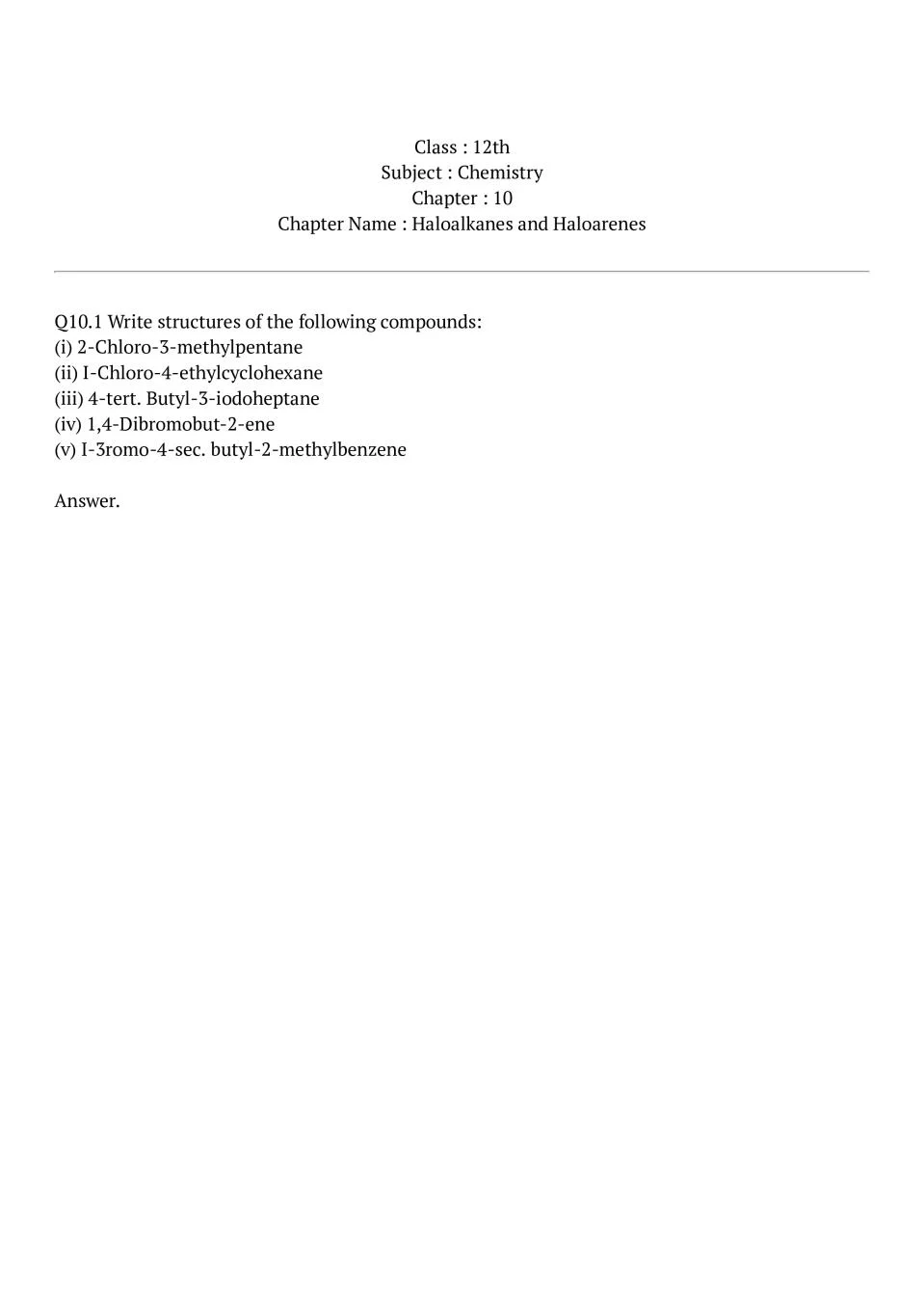 NCERT Solutions For Class 12 Chemistry Chapter 10 Haloalkanes and Haloarenes.