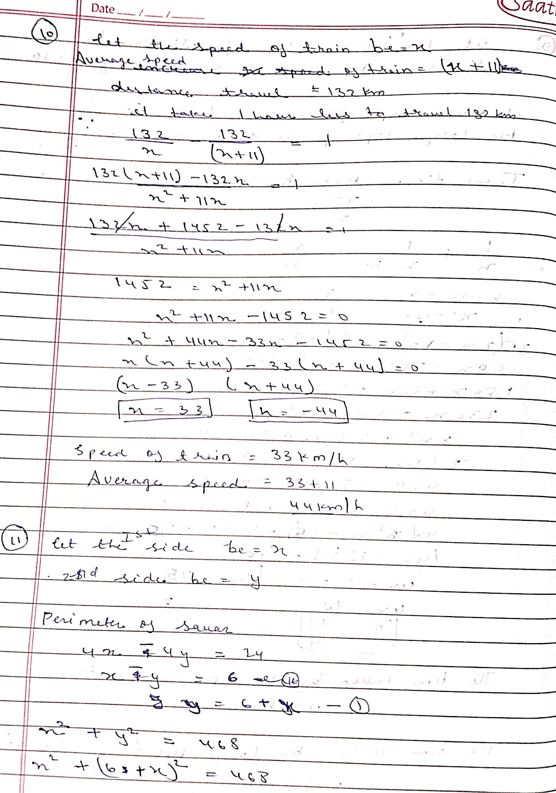 CBSE Class 10 Handwritten Notes Chapter - Quadric Equation